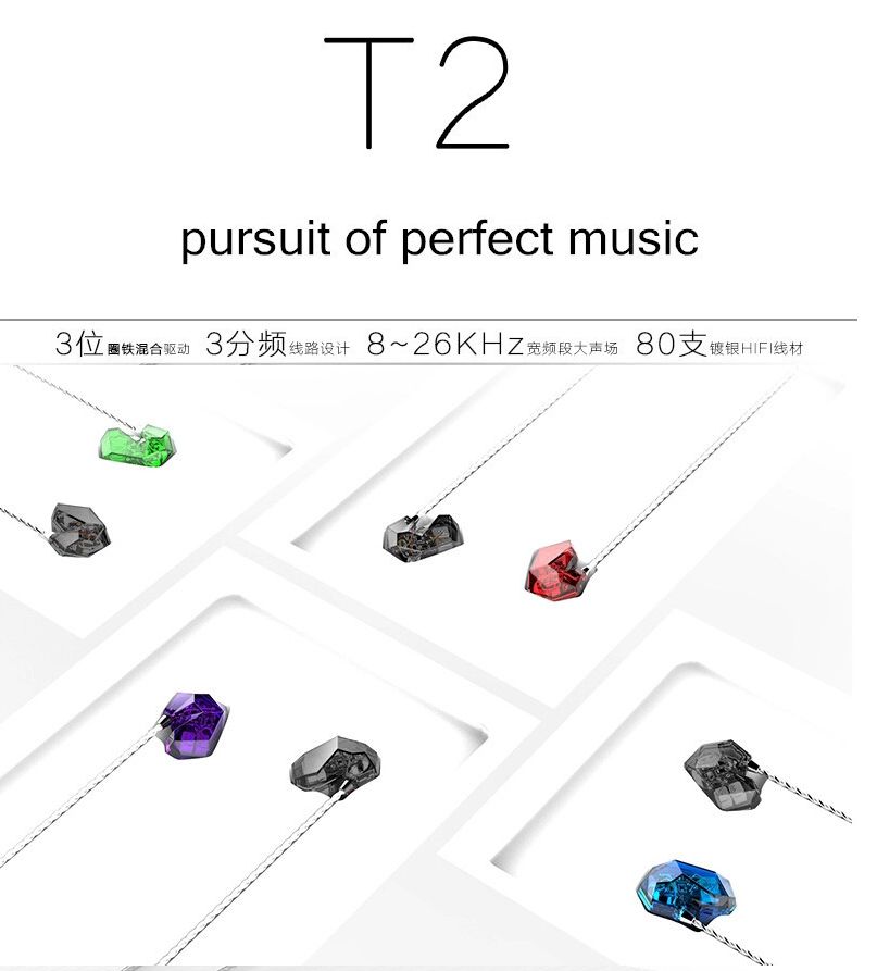 T2 is unprecedented pleasant balanced armature + dynamic hybrid in-ear earphones, it’s so outstanding to freely provide you with the most incisive musical reduction effect.