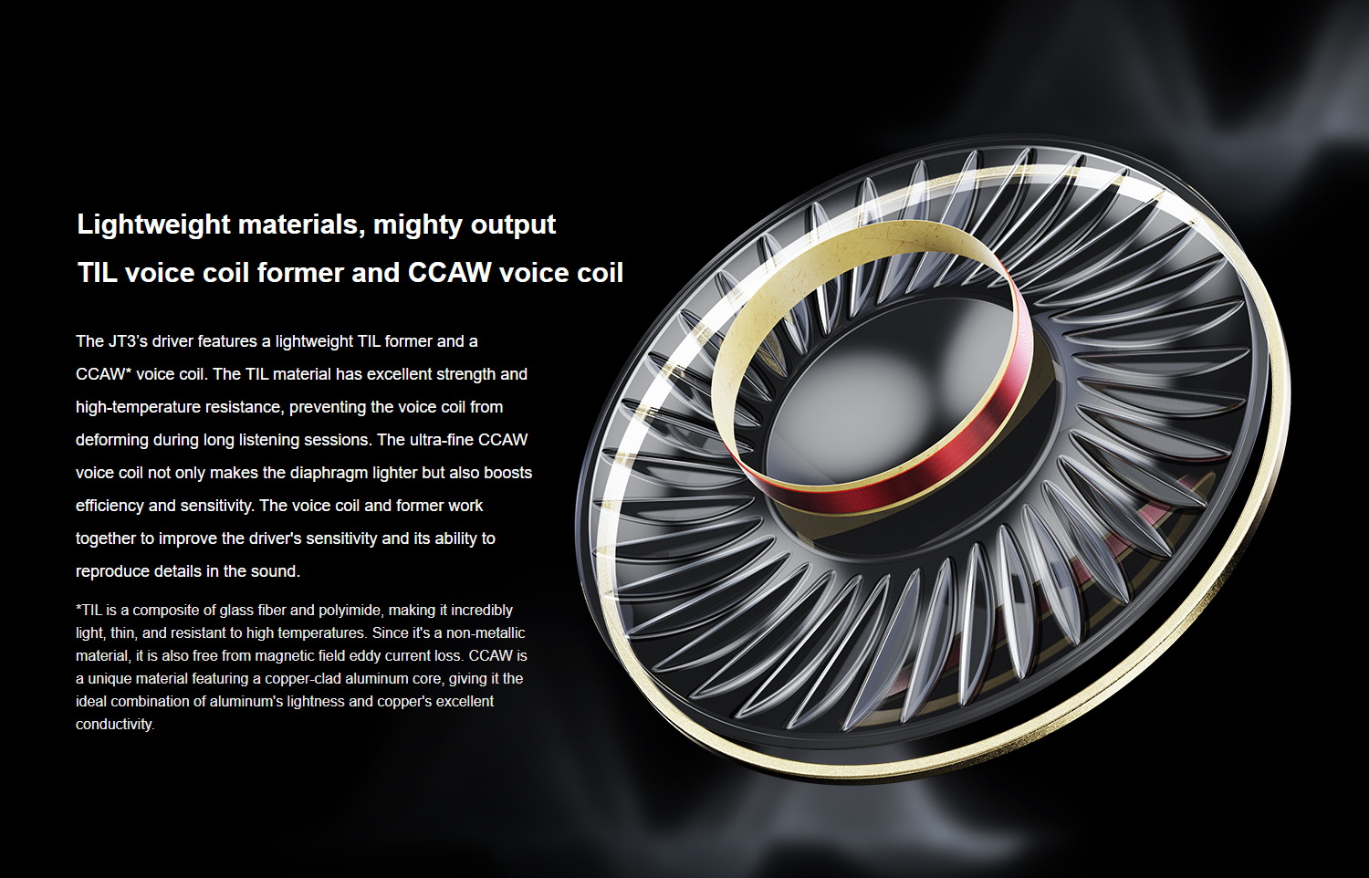 แม่เหล็ก N52 ประสิทธิภาพสูง ร่วมกับแกน TIL และวอยซ์คอยล์ CCAW น้ำหนักเบา