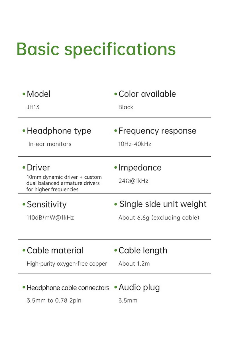 ไดรเวอร์ไฮบริด: 1 Dynamic 10 มม. + 2 Balanced Armature